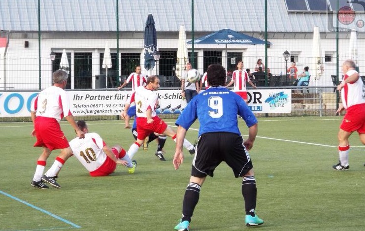 20160829 ah b svg sf koellerbachMit Köllerbach stand zu Beginn der Runde der bekannt starke Gegner auf dem Platz. Zunächst spielten wir hinten sicher in den Reihen und warteten ab. Das Spiel plätscherte die ersten 15 Minuten dahin. Dann nach 20 Minuten die kalte Dusche. Durch eine Unachtsamkeit gingen die Köllerbacher mit 1:0 in Führung. Wir spielten jetzt auch ein wenig mit und hatten unsererseits die ein oder andere Chance, die wir jedoch nicht verwerteten. Dann schreiben wir die 35. Minute – Eckball von uns, ein Abwehrspieler der Köllerbacher ist mit der Hand dran, aber leider pfeift der Schiri keinen Strafstoß. Sekunden später auf der Gegenseite, Flanke von Links von einem Köllerbacher, der Ball springt einem Spieler von uns an die Hand – und diesmal ertönte „leider“ die Pfeife des Schiris. Den fälligen Strafstoß verschoss zwar der Gästespieler, aber im Nachschuss war der Ball trotzdem drin.