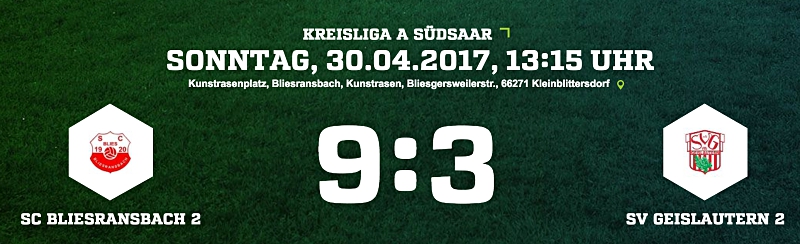 SC Bliesransbach II – SV Geislautern II 9:3 (3:1)