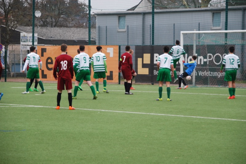 In den ersten zehn Minuten bestimmten wir das Spielgeschehen. Nachdem ein guter Freistoß von Hendrik zunächst noch geklärt werden konnte, verwandelte Leon die anschließende Ecke in der 5. Minute zum 1:0. Kurz darauf hatte Ghorbanali im Eins gegen Eins gegen den Torhüter die große Chance auf 2:0 zu erhöhen. Eine weitere exzellente Tormöglichkeit blieb nach zehn Minuten ebenfalls ungenutzt. Steve und Calvin hatten die gegnerische Abwehr mit einem Doppelpass alt aussehen lassen.