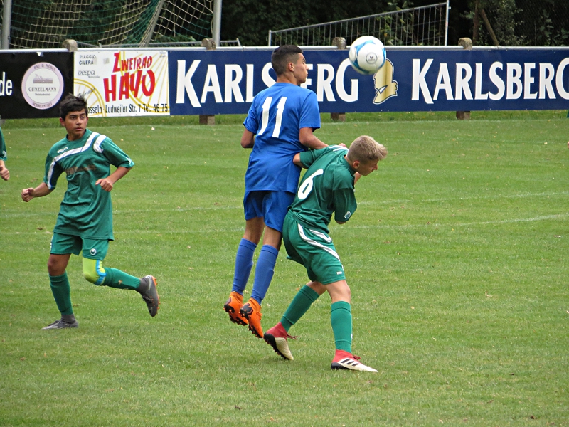 20180922 c sg scg atsv saarbruecken 14Im ersten Spielabschnitt dominierten wir das Spielgeschehen, kamen aber dennoch selten zu torgefährlichen Abschlüssen. So war es in der es in der 12. Minute auch ein Eigentor, das uns die Führung bescherte. Dominic hatte von links außen geflankt, ein Abwehrspieler köpfte die harmlose Flanke unglücklich in die lange Ecke. Die Gäste waren nur einmal in der Situation, ein Tor zu erzielen. Torhüter Jaro ließ einen Schuss nach vorne prallen. Beim Versuch, den Ball zu erreichen, holte er einen Gegenspieler von den Beinen. Den in die Mitte geschossenen Strafstoß konnte er mit dem linken Fuß abwehren. In der letzten Minute hatte Niklas zwei große Gelegenheiten auf 2:0 zu erhöhen. Es blieb jedoch bei der knappen Führung zur Pause.