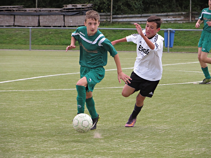 Im ersten Testspiel unserer neu formierten C-Junioren hatte die Mannschaft Probleme im Spielaufbau. Torgefährliche Szenen waren somit Mangelware. In der Abwehr konnten wir die meisten Angriffe frühzeitig unterbinden. Kurz vor der Halbzeit wurde ein Ball unglücklich in die Strafraummitte abgewehrt. Die Gäste hatten keine Mühe, den Ball ins Tor zu schießen.