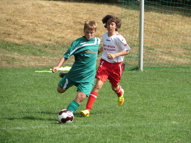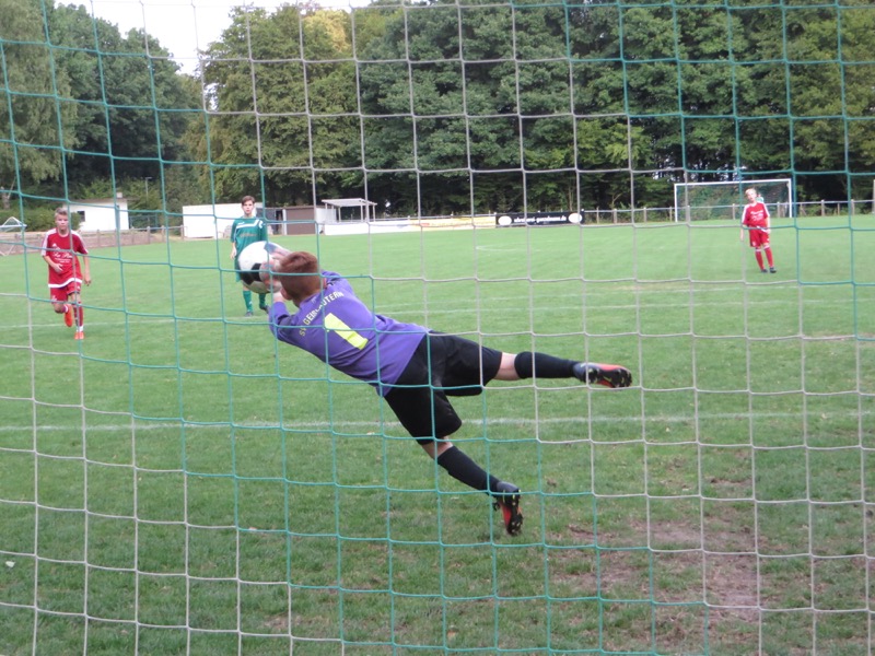20160831 c sg scg jfg obere saar 22Mit Lauf- und Zweikampfbereitschaft sowie viel Spielübersicht und guter Raumaufteilung spielte uns die JFG in der ersten Halbzeit mit einfachsten Mitteln gnadenlos an die Wand. Ehe wir eine erste Torchance durch Lucas in der 15. Minute hatten, hatten uns die Gäste schon fünf Tore eingeschenkt. Bis zur Pause rappelte es noch weitere sechs Mal in der Kiste.