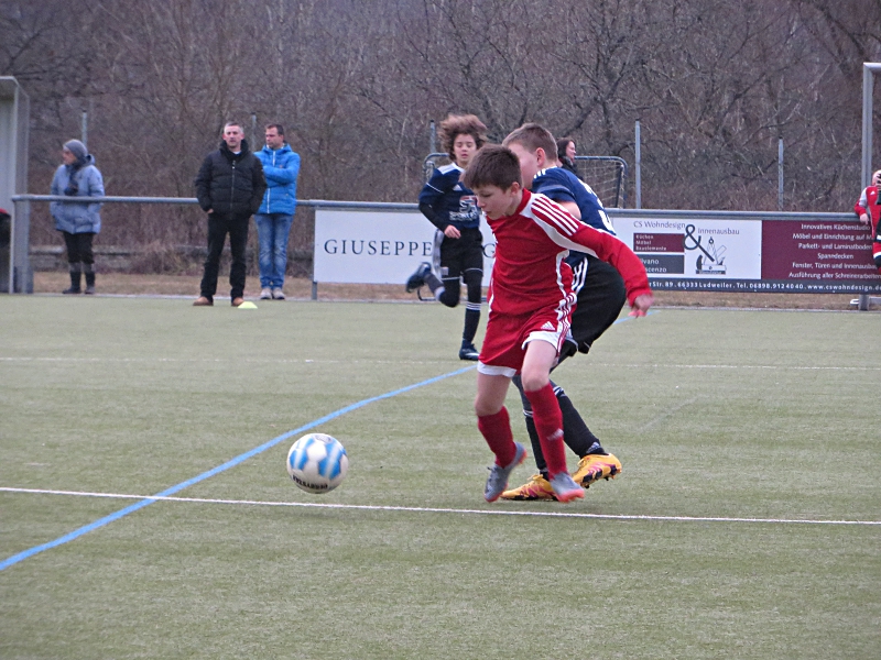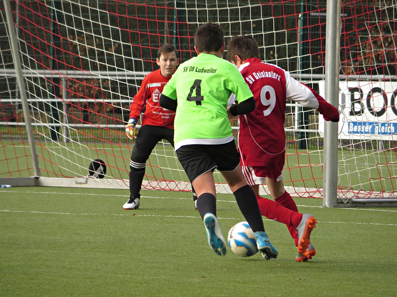 Die 1. Halbzeit konnte nicht besser beginnen. Nach 4 Minuten stand es bereits nach Toren von Davis, Noah und Julien 3:0 für unsere Mannschaft. Vor allem die Pässe aus dem Mittelfeld auf die Flügel sorgten immer wieder für gute Torchancen, die auch genutzt wurden. Davis, der immer an der Abseitsgrenze lauerte und diese leider auch oft überschritt, erhöhte in der 14. Minute sogar noch auf 4:0. In der 17. Minute zeigte Ludweiler, dass sie auch Fußball spielen können. Durch einem Steilpass zwischen zwei Verteidigern hindurch, kam ihr Stürmer frei zum Abschluss und ließ Philipp keine Chance. Aber schon 3 Minuten später stellte Julien, der auf dem rechten Flügel angespielt wurde und nach innen zog, mit einem satten Schuss in den Winkel den 4-Tore-Vorsprung wieder her. In der 22. Minute zirkelte Noah einen Eckball von der linken Seite auf den kurzen Pfosten und der Ball wurde von einem Verteidiger ins eigene Tor abgefälscht. Nur 5 Minuten später servierte Noah einen Eckball, diesmal von der anderen Seite, maßgeschneidert in die Mitte, so dass Marvin nur noch den Fuß hinhalten musste. Halbzeit 7:1 für SG SV Geislautern II.