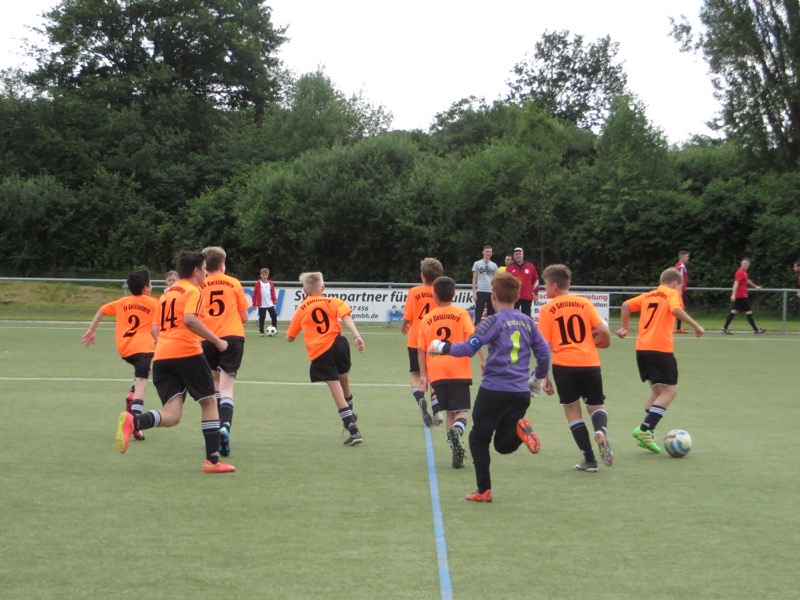 Nach der Pause ließ Trainer Thomas Vehmeier den älteren Jahrgang auflaufen. Die Gäste gerieten nun mehr unter Druck. In der 34. Minute spielte Paul den Ball auf die linke Außenbahn zu Julius. Nachdem er seinen Gegenspieler ausgetanzt hatte, flankte er in die Mitte zu Paul, der den Ball in die rechte untere Ecke genau neben den Pfosten setzte. Wir kamen zu weiteren Möglichkeiten, ließen diese aber ungenutzt. Mitte der zweiten Hälfte tauschte der Trainer das komplette Team gegen den jüngeren Jahrgang, der die Führung bis zum Schluss halten konnte.