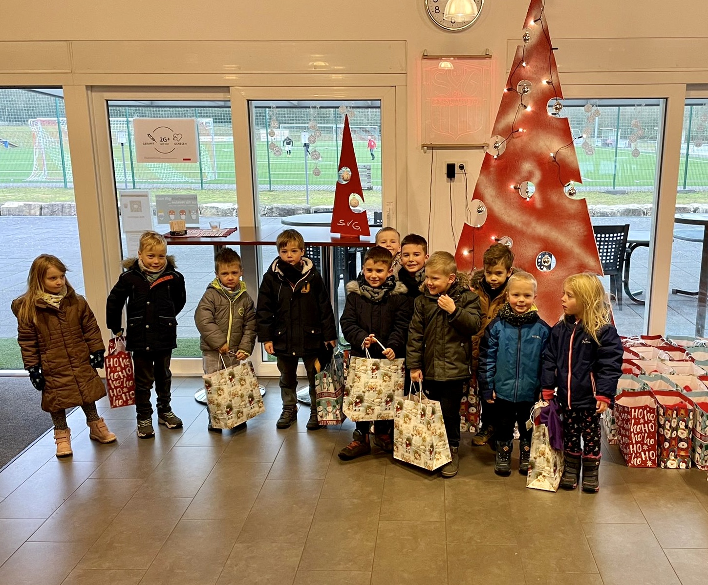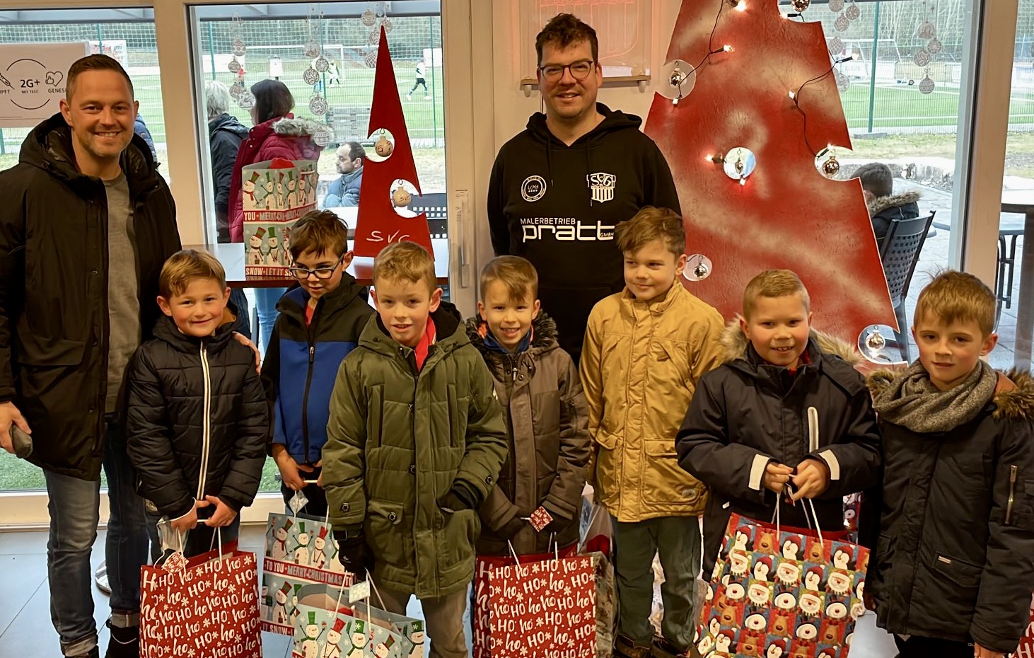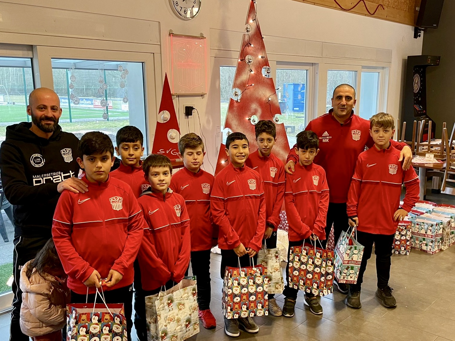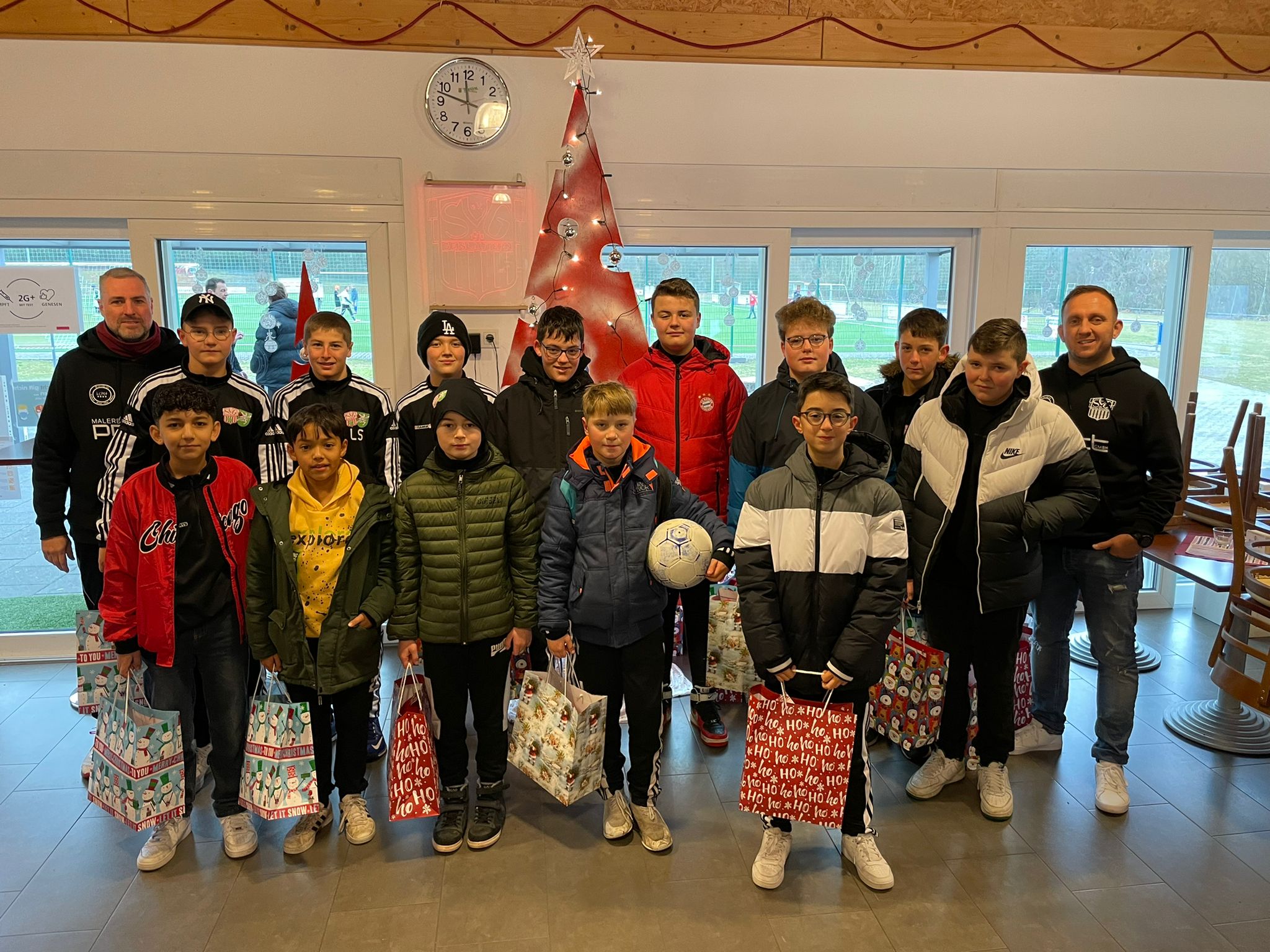 Aufgrund der Situation, wie sie wieder mal ist, konnte auch in diesem Jahr keine Weihnachtsfeier unserer Jugendabteilung im Dorfgemeinschaftshaus stattfinden. Stattdessen wurden die Mannschaften der G-, F-, E- und D-Jugend am Sonntagmorgen unter Corona-Maßnahmen beschert, die Ausgabe an C- bis A- Jugend erfolgt im neuen Jahr.