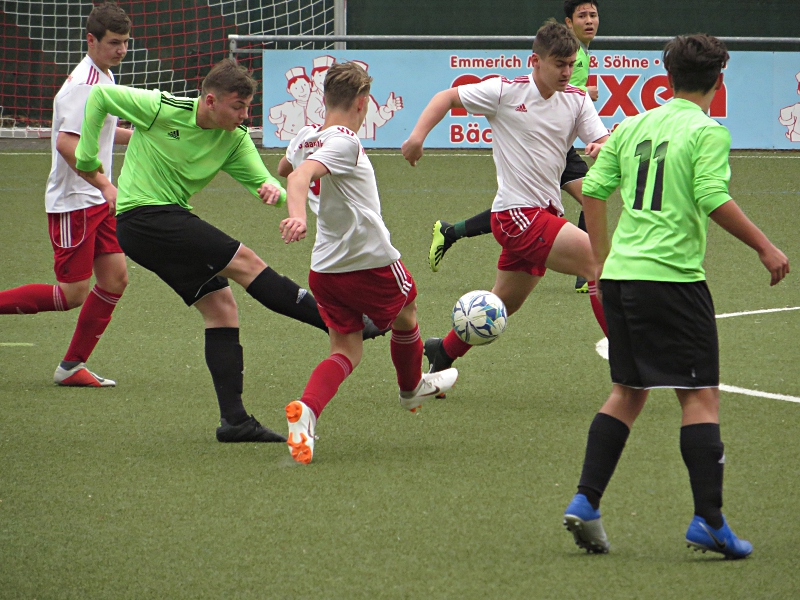 Die Heimmannschaft begann konzentriert und hatte in der 6. Minute durch einen Kopfball von Mikail, die erste Chance im Spiel. Leider ging der Ball über das Tor. Unsere Jungs erspielten sich weitere Halbchancen, bei denen der letzte Pass meistens knapp verfehlt wurde oder aber die Schüsse zu halbherzig waren. In der 28. Minute kam Mikail nach einem Einwurf an den Ball und netzte diesen sehenswert ins lange Eck ein. Als jeder schon dachte, es geht mit einer Führung in die Pause, entschied der Schiedsrichter berechtigterweise auf Foulelfmeter für die Gäste, die diese Chance zum Ausgleich nutzten.